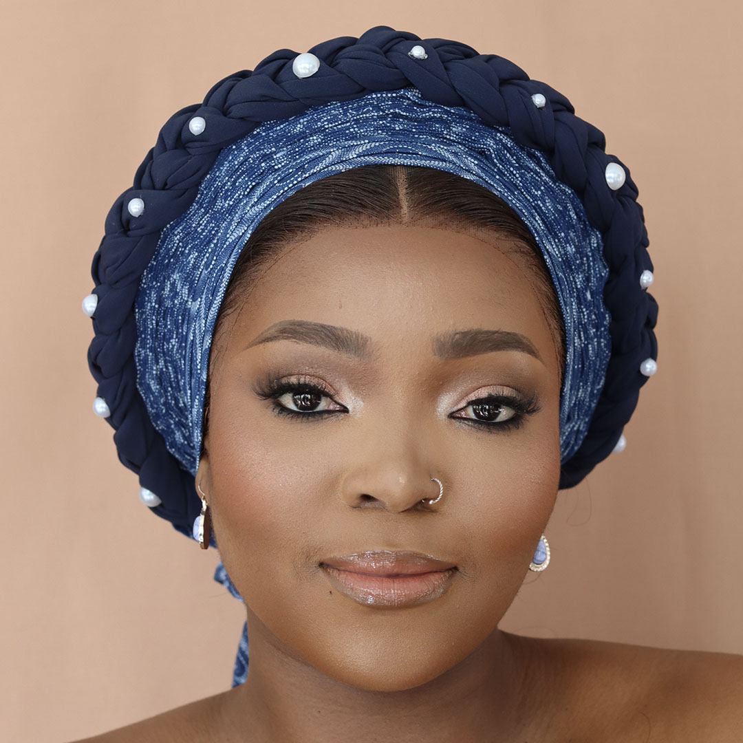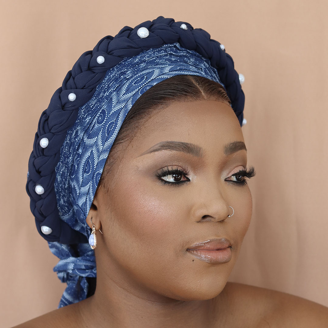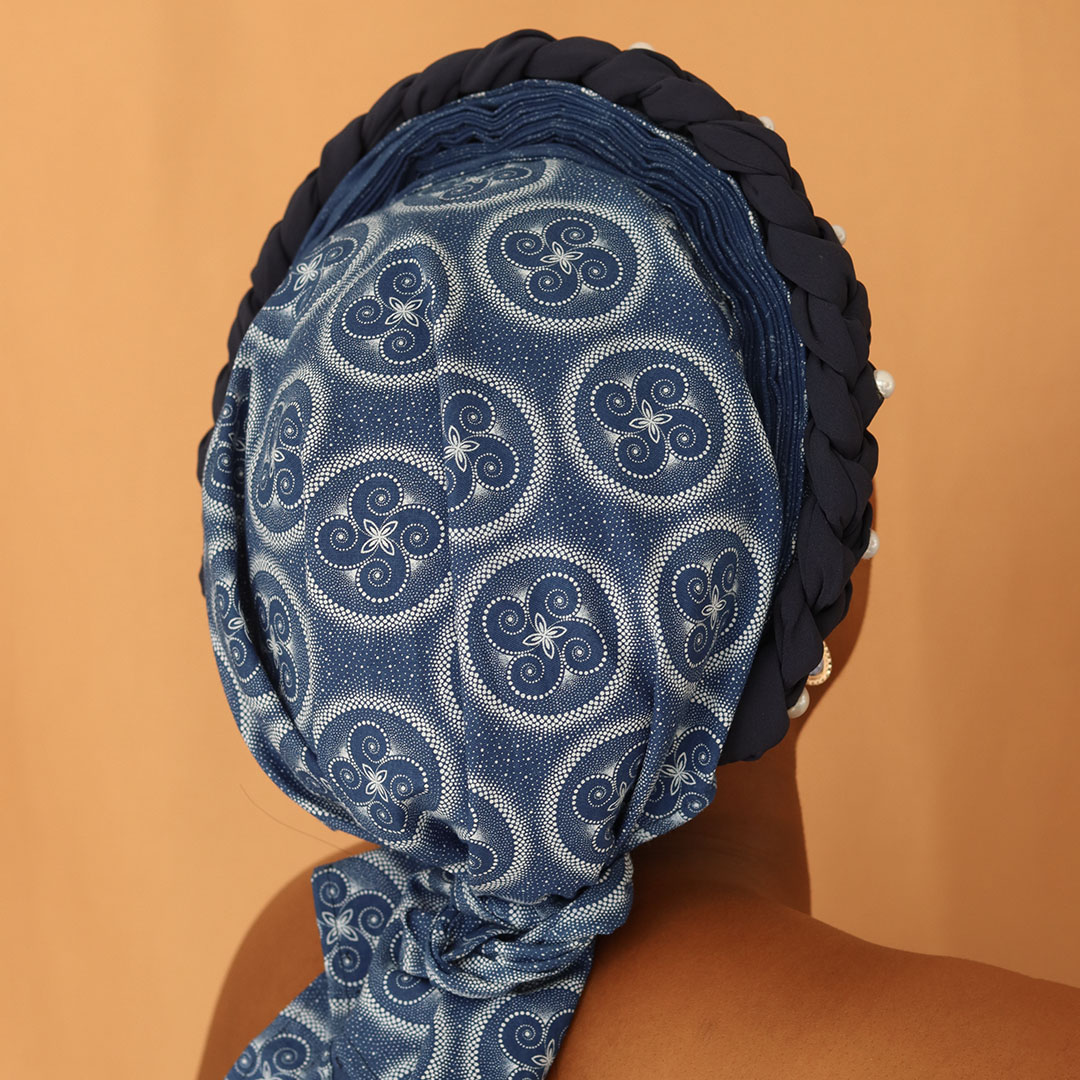 Fabric : Sishweshwe pattern with a braided satin cloth and flat beads