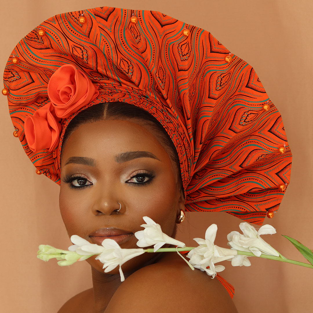 Sishweshwe - Beaded Flower Fan Gele quantity