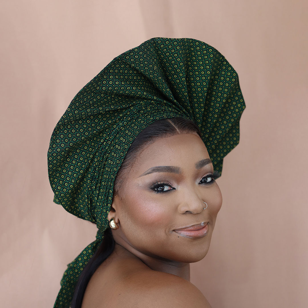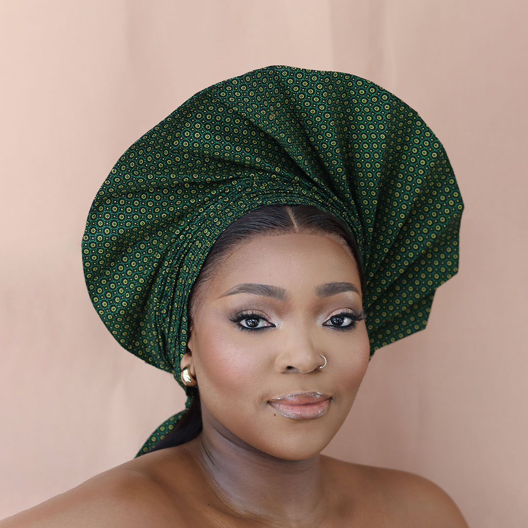 Extended cotton twill circle gele with beads